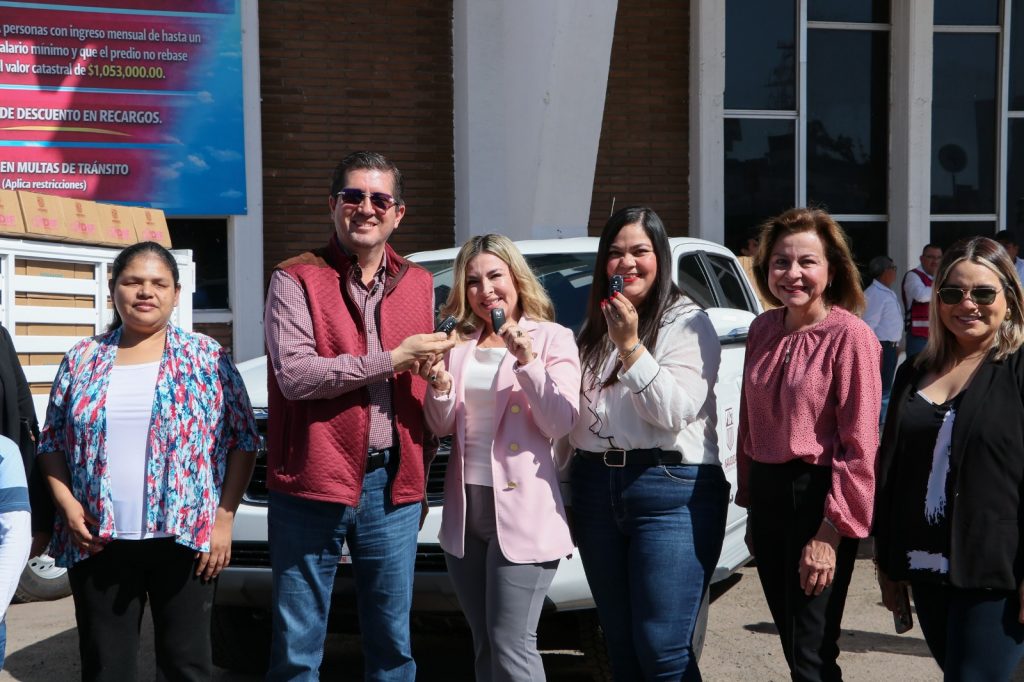 *El alcalde Jorge Elías hace entrega oficial de los vehículos a la presidenta del DIF, Luz Argel Gaxiola Vega.