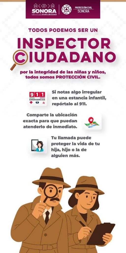 Sonora; 25 de noviembre de 2025.- Con empatía y una supervisión permanente, juntos podemos mejorar las condiciones de las Instancias Infantiles y con ello brindar condiciones más seguras al interior de dichos centros; denunciemos al 911 todos aquellos factores de riesgo que amenacen la integridad de nuestra niñez.