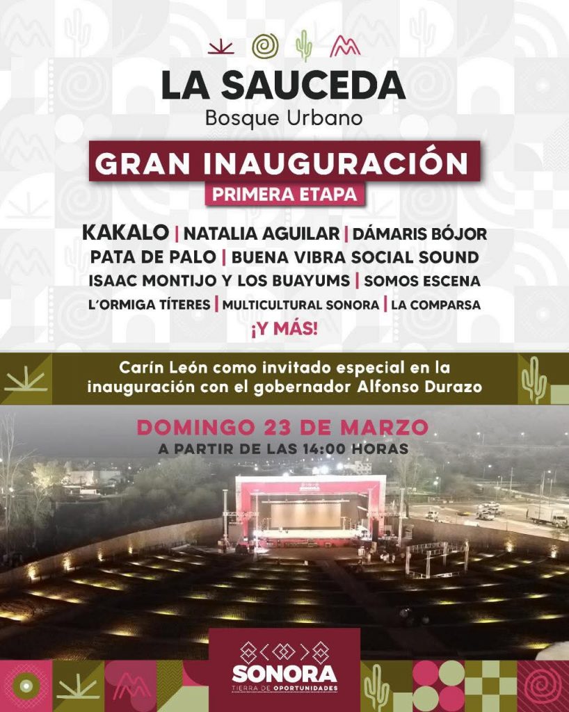 - La inauguración estará a cargo del Gobernador Alfonso Durazo, teniendo como invitado especial a Carin León.